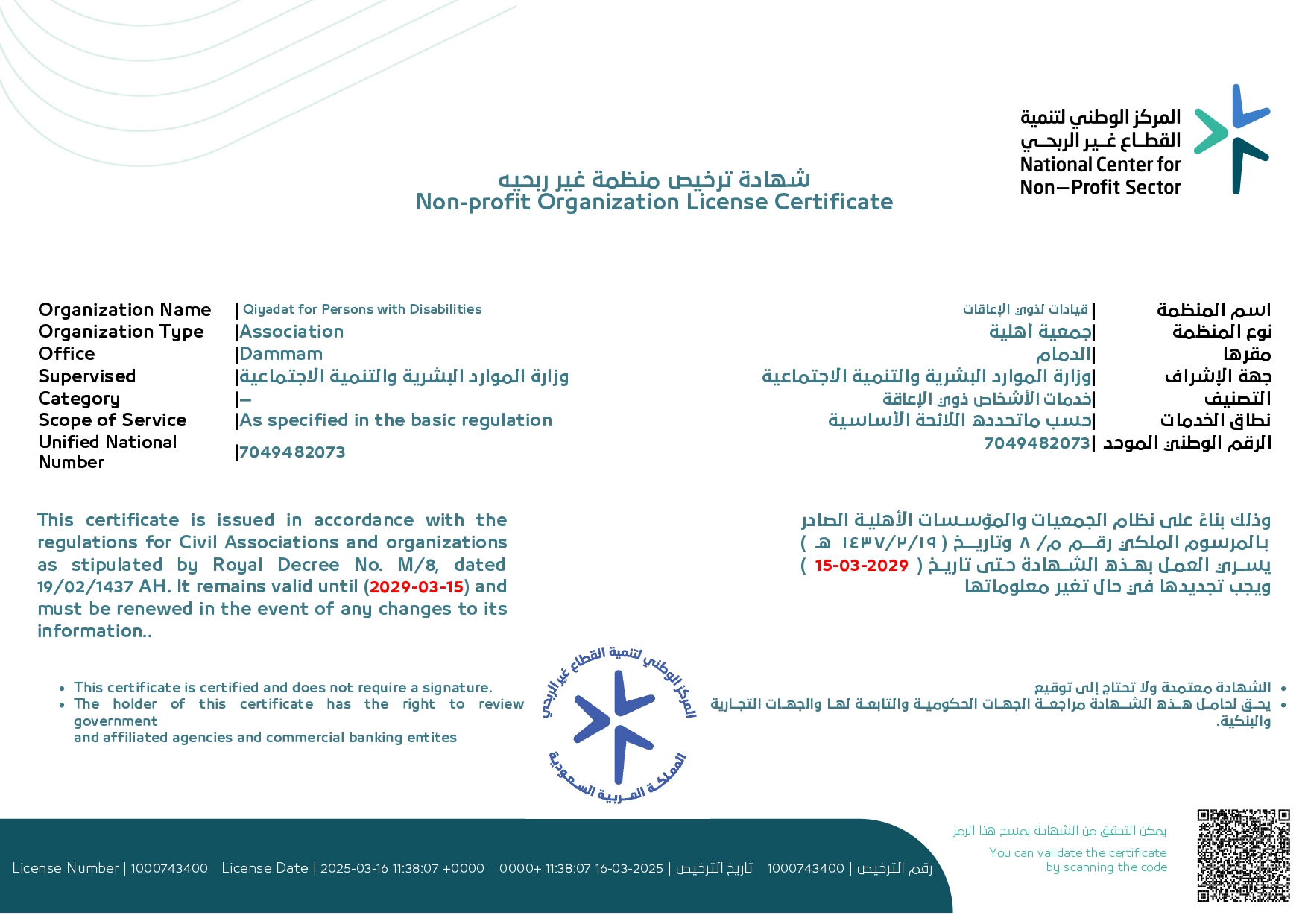 شهادة التسجيل